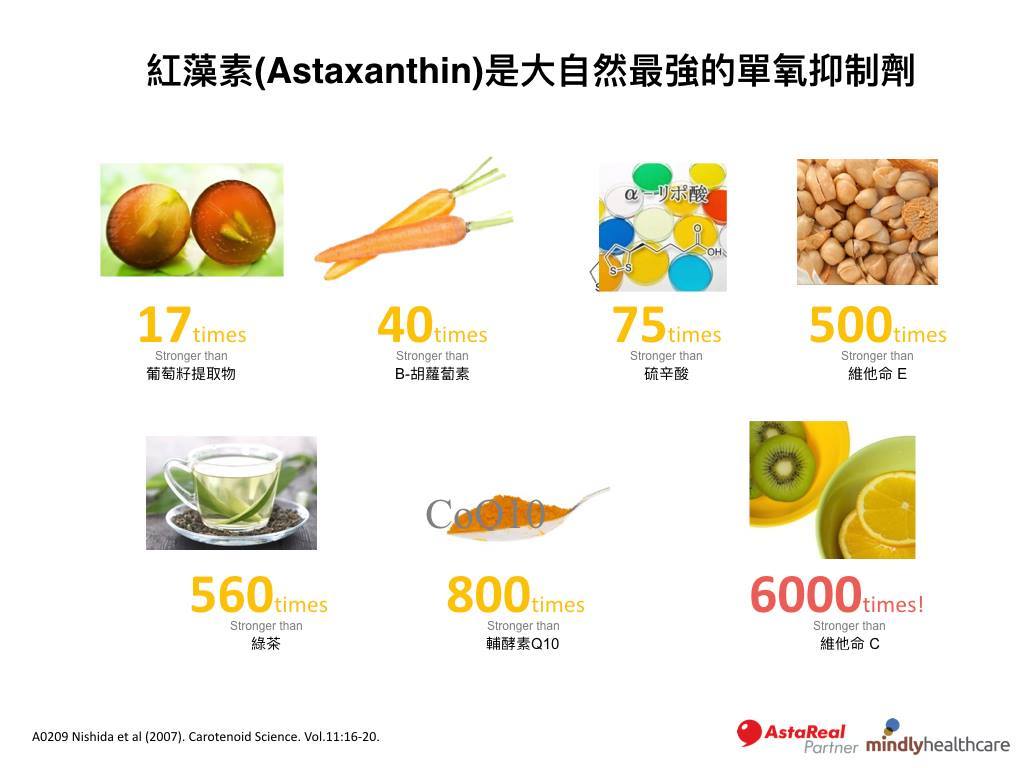 AstaREAL®有超級維他命之稱,是CoQ10的 800倍,維他命C的 6,000倍。